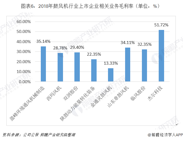 结合上市企业数据来看,鼓风机行业整体盈利水平较高。2018年,杰尔科技整体毛利率达到51.72%,山东章鼓风机业务毛利率达到34.11%,临风股份整体毛利率为32.35%。
