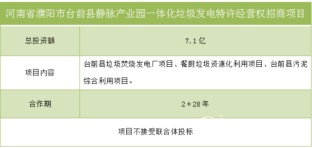 河南省濮阳市台前县静脉产业园一体化垃圾发电特许经营权招商项目