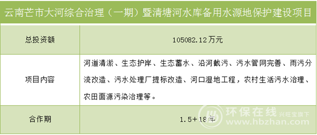 云南芒市大河综合治理(一期)暨清塘河水库备用水源地保护建设项目