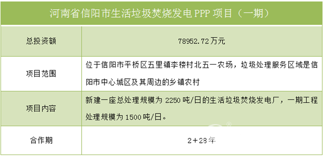 河南省信阳市生活垃圾焚烧发电PPP项目
